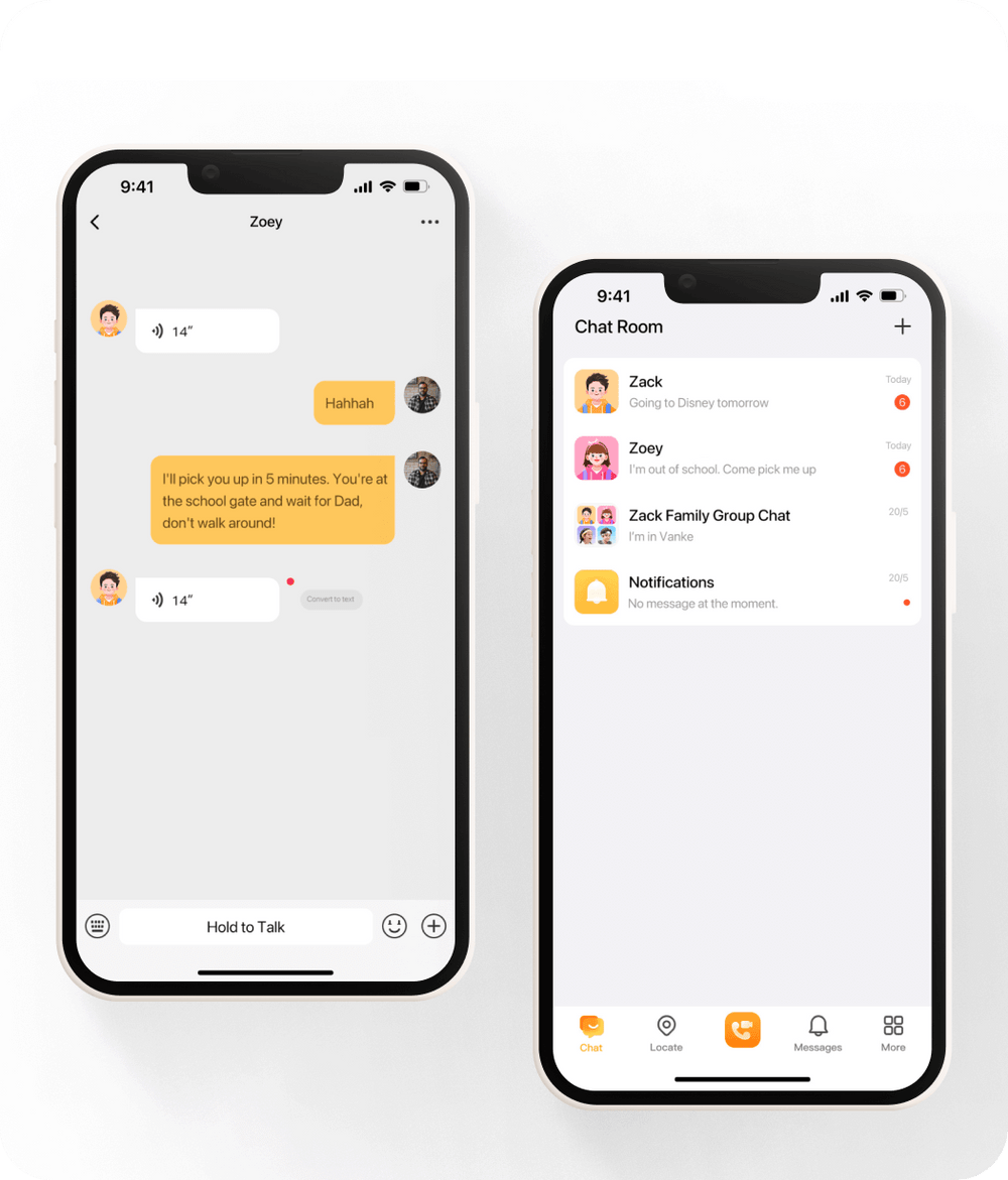 Stay in touch effortlessly, no matter where you are. When video calling isn't convenient, the imoo app's chatroom feature allows you to communicate with your child through text and voice messages.
