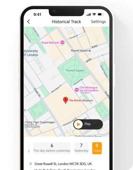 Even when you’re not with your child, the imoo app lets you keep track of their daily journeys. With a 14-day location history, you can see where they’ve been each day and stay connected to their world.